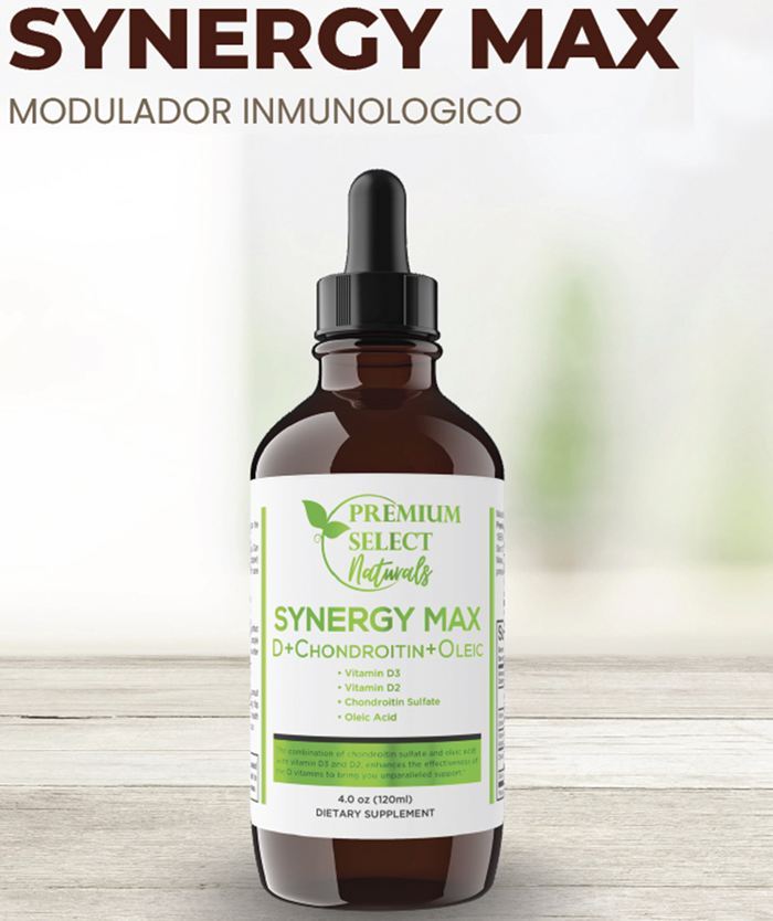 Synergy Max está formulado con ingredientes de la más alta calidad similares a los de Rerum, incluyendo vitamina D3, vitamina D2, sulfato de condroitina y ácido oleico, y se complementa con agua purificada y Nutra-Stabl™, que contiene glicerina y ácido cítrico.